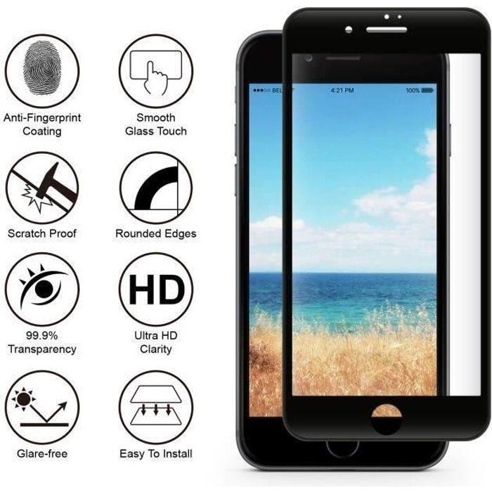 Tempered Glass - Phonillico® - Compatible Apple iPhone 6/6S - Black Edge - Ultra Resistant - Anti-Scratch