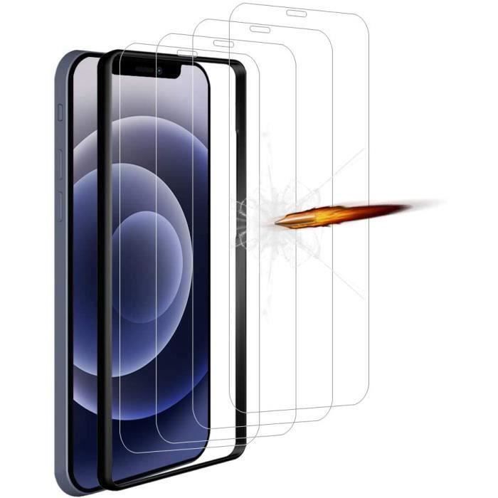 Verre Trempé - E.F.CONNECTION - pour iPhone 12 - Pack de 4 - Compatible Face ID - Transparent