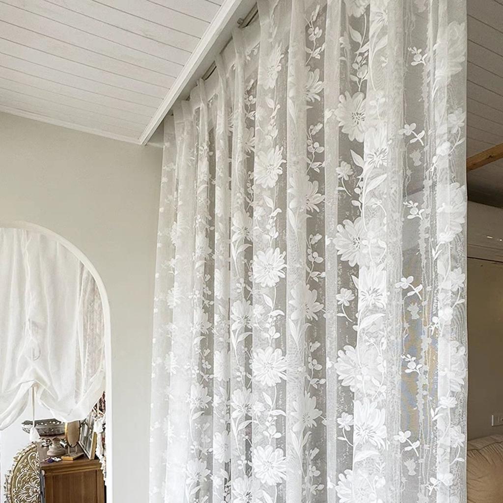 1pc Bohemian Sheer Lace Yarn Curtain Panel with Floral Patterns – Elegant Rod Pocket Window Drapery for Living Room or Bedroom