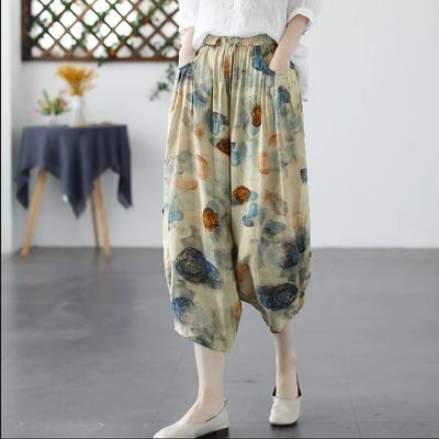 Summer Loose Print Vintage Linen Thin Women's Cotton Linen Nine Point Harem Pants Women's Seven Point Baggy Pants