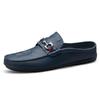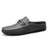 Crocodile Pattern Men's Slippers Genuine Leather Muller Shoes Outdoor Man Loafers Non-slip Casual Half Shoes Fashion Lazy Flats