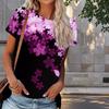 Women Summer T Shirt Cherry Blossom Print Retro Fashion Short Sleeve Tees Casual Printed Tops
