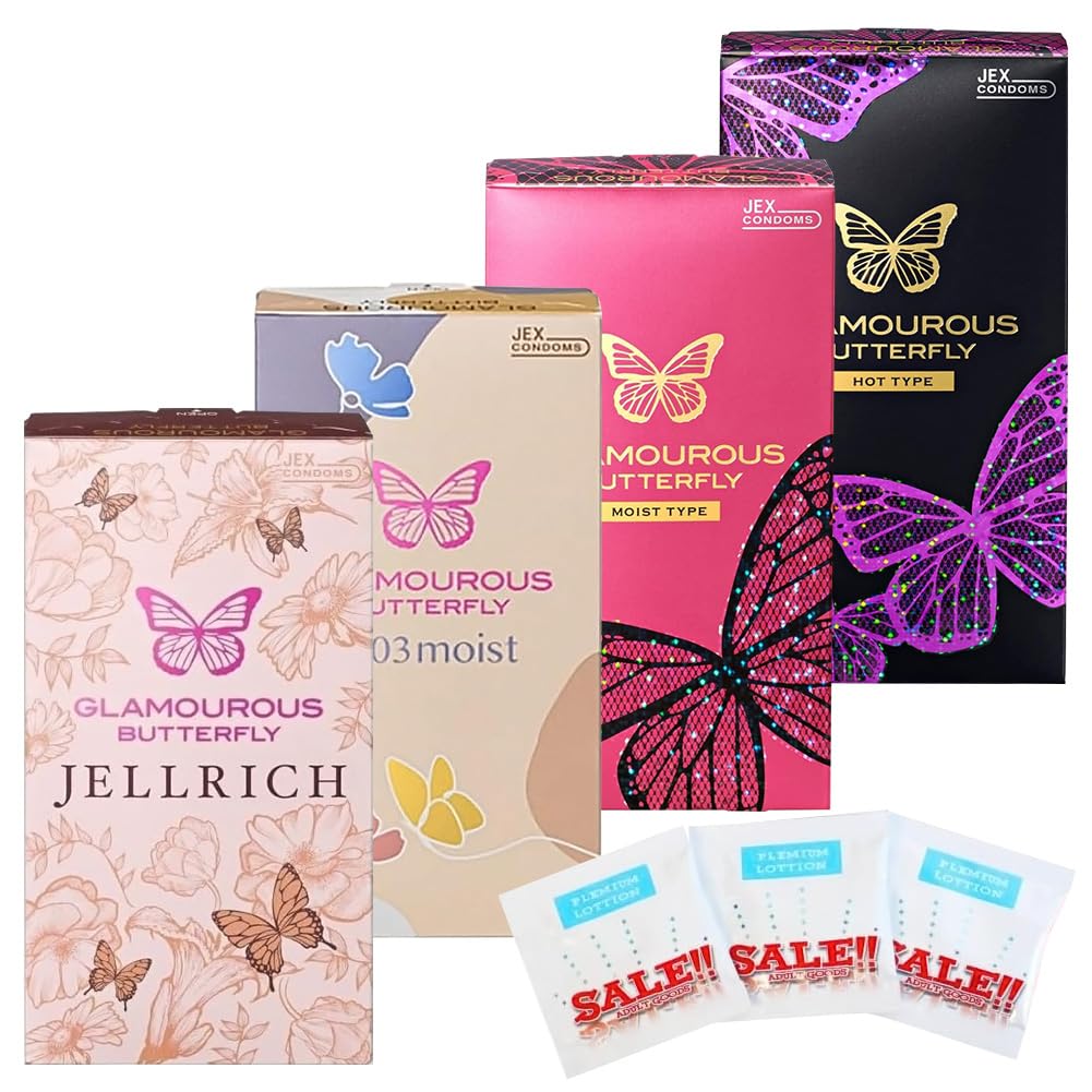 Condom Glamorous Butterfly Fun Set with Bonus Lotion Moist Hot Rich Pieces of [6 Pieces] [6 Pieces] [8 Pieces] [8 0.03 Moist]