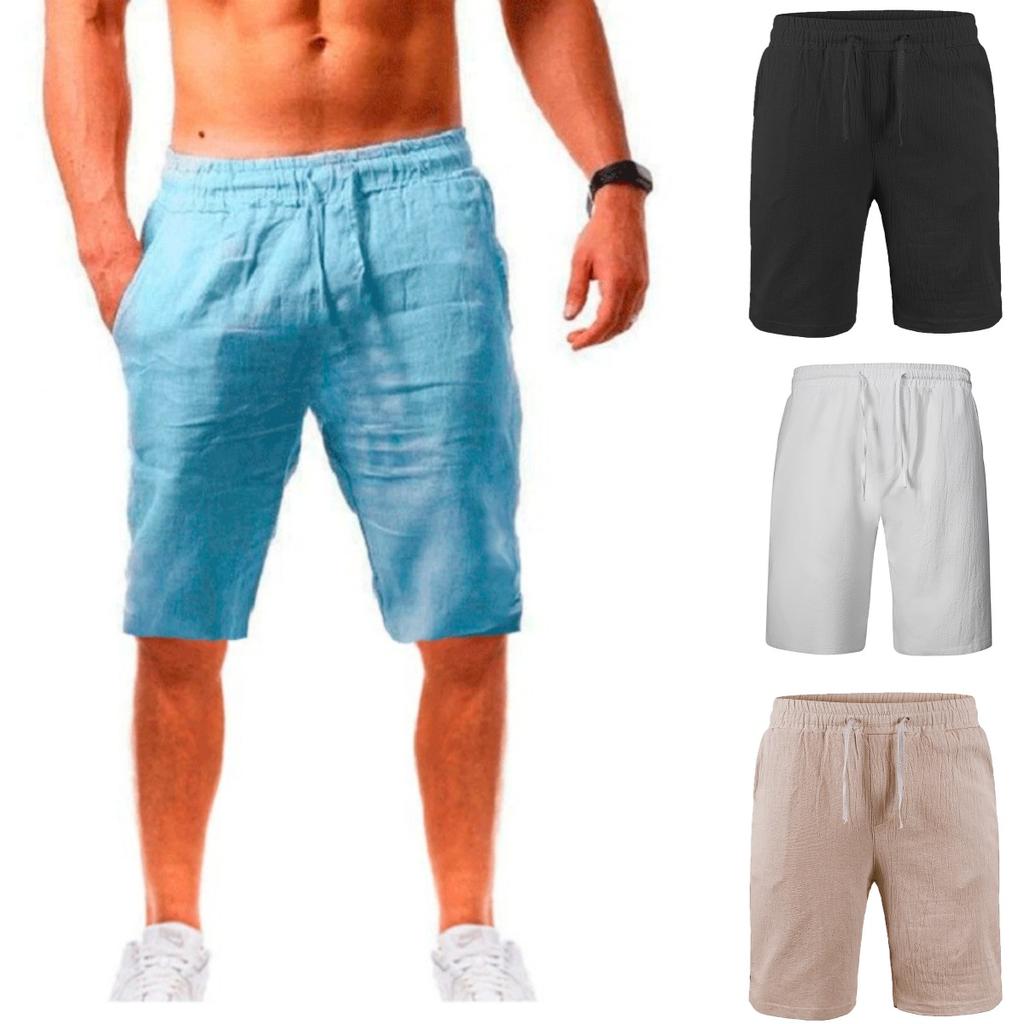 Summer Men's Cotton Linen Shorts Pants Breathable Solid Color Linen Trousers Fitness Streetwear