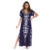 Women's Fashion Summer Spring Flower Pattern Print 1/2 Sleeves V-Neck Loose Waistline Casual Dresses