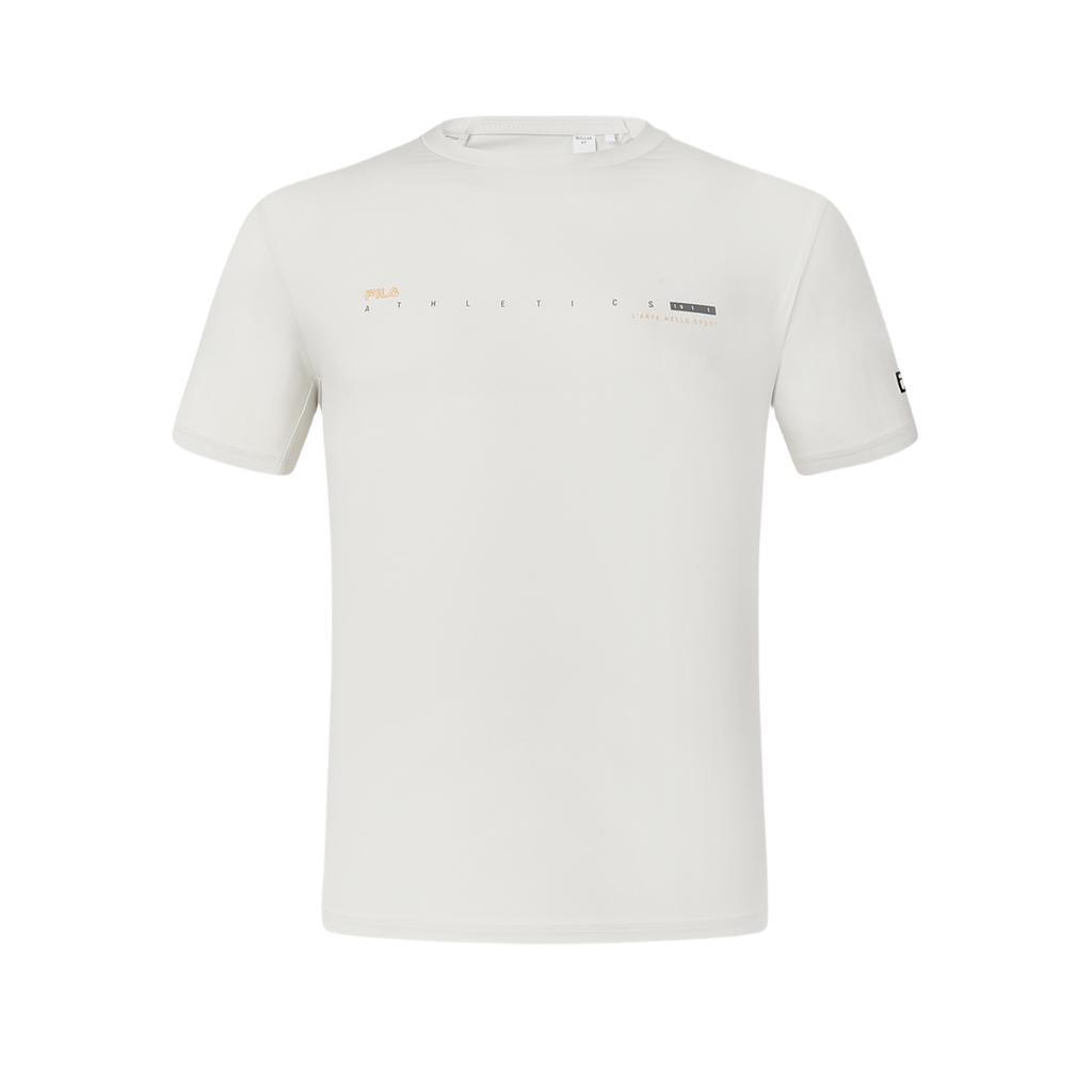 Fila Fitness SS24 Logo Print Moisture-Wicking Quick-Dry Cool Sports Knit Crew Neck Short Sleeve T-Shirt Men Tops Pearl-Gray A11M421107FGY