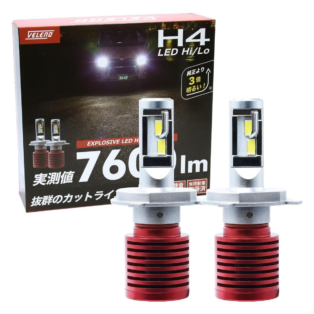 VELENO H4 LED Headlight Explosive Light Measured Value 7600Lm Hi Lo Switching 6600k Pure White Beautiful Cut Line LED Headlight Compact Compatible
