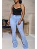 Discover the perfect blend of style and comfort with these high-waist flared denim trousers designed for women. Crafted from quality cotton, these trousers offer a soft and breathable fit, making them ideal for any casual occasion. The solid pattern lends a timeless and versatile look, while the sportive style ensures ease of movement and a modern flair. Available in large sizes, these trousers are a must-have addition to your wardrobe for a chic, everyday outfit.