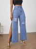 Introducing our fashionable ripped and split ladies' jeans featuring a blend of European and American style. These high-waisted jeans are crafted from premium cotton, ensuring comfort and durability. Perfect for fashion-forward individuals, they provide a stylish edge to any outfit. Whether you're dressing up for a night out or keeping things casual, these jeans are designed to stand out.
