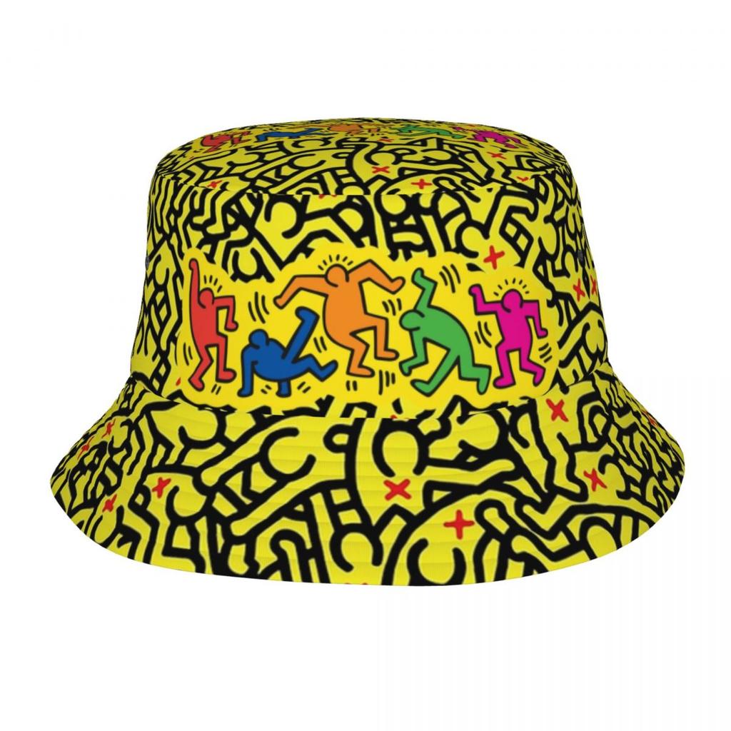 Fashion Graffiti Yellow June Bucket Hats Women Unisex Colorful Pop Art Haring Geometric Outdoor Sun Summer Fisherman Cap