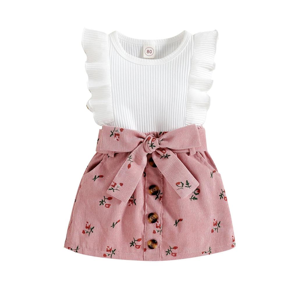 Girls Baby Short Sleeve 2 Piece Ruffle Floral [Miipat] Children's Clothes, Setup, Summer, Clothes, T-shirt, Shorts, Skirt, Set, Sleeves, Ribbed,