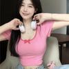 Pure Desire Bow Cropped Knit Top Women's Summer High Waist Crop Top Design Sexy Short Sleeve T-shirt