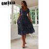 GMXIA Summer Love Polka Dot Dress Women Casual A-Line Short Sleeve Square Collar Ruffle Midi Dress Chiffon Red Black Blue Green