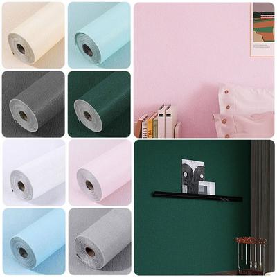 10 Meters / Roll 3D Self-adhesive Thicken Waterproof Wallpaper Linen Textured Pure Color Home Decorative Refurbished Sticker