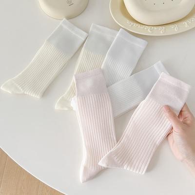 Korean Style Women Socks Summer Cotton Thin Breathable Middle Tube Socks Solid Color White Gray Pink Blue Yellow Long Socks Sox