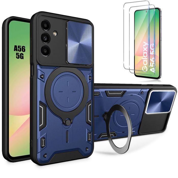 Case for Samsung Galaxy A56 5G - BOOLING - Navy Blue Ring Camera Cover - 2 Tempered Glasses