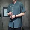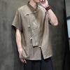 2025 Men Chinese Style Shirts Men Short Sleeve Shirt Summer Men Bamboo Leaf Shirt Men Cotton Trendy Loose Vintage Tops