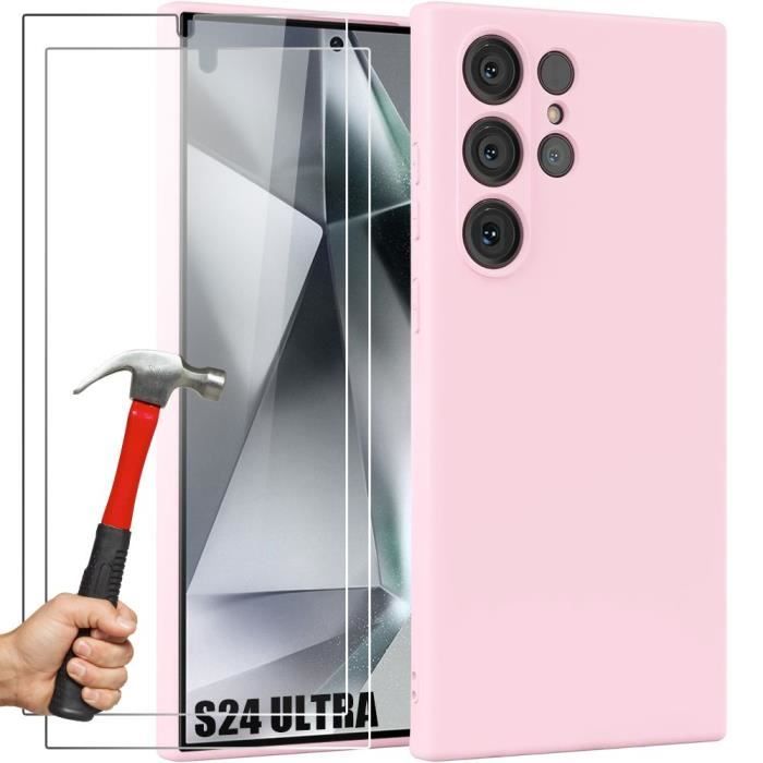 Case - Booling - for Samsung Galaxy S24 Ultra - Light Pink Silicone - Shockproof - Flexible - 2 Protective Films