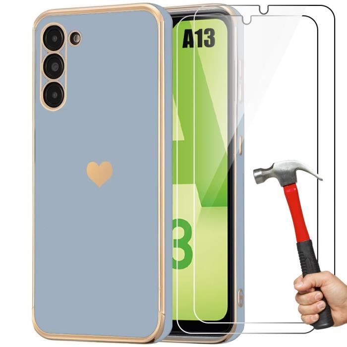 Coque - Booling - pour Samsung Galaxy A13 5G / A04s - Antichoc - Silicone Liquide - Cœur Doré - avec 2 Verres Trempés