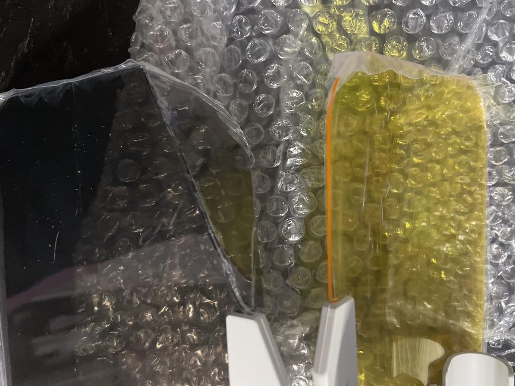 The product was packaged only in a bag, accordingly arrived damaged (corner broken).