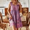Summer Printed Sleeveless V-neck Vest Dress, Fashionable Vacation Printed Dress for Women