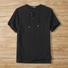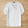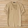 INCERUN Vintage Mens Summer Short Sleeve Lace Up Neck Solid Color Casual T-shirts Tops