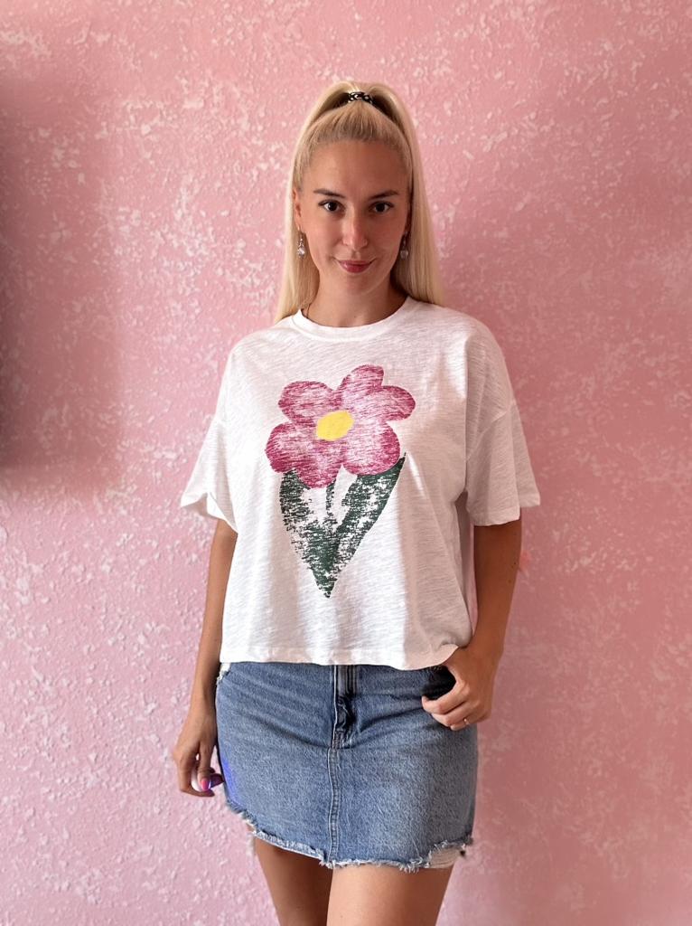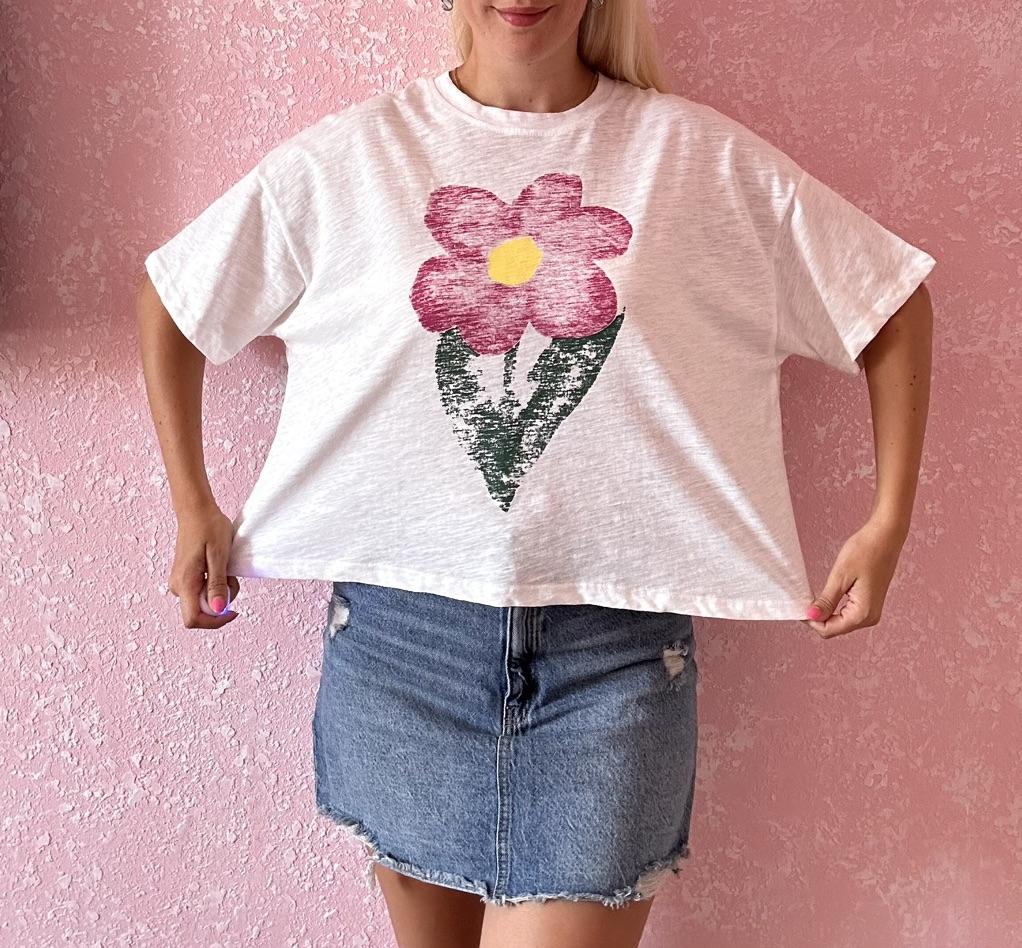 DIMANAF 2025 Summer Cotton T-shirt Women Flower Printing Short Sleeve Loose Green Blue T-shirt