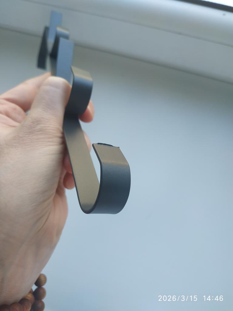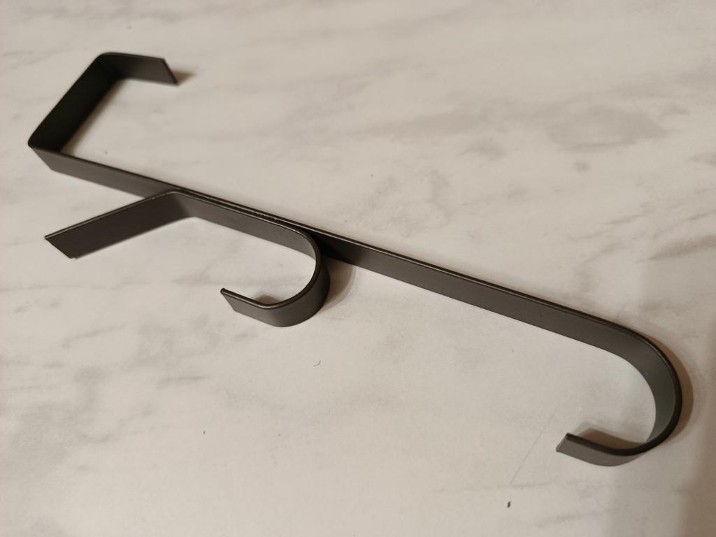 Excellent metal hook. Hook with a bend, which allows attaching to doors of different thicknesses. Sits firmly. Withstands heavy weight. Very satisfied.