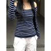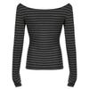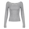 Japanese Basic Slim Long Sleeve Stripe Tee Off Shoulder O Neck Korean Street Style Spring Autumn Y2K Gray T Shirt Women