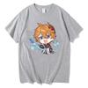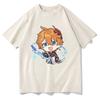 Summer Cozy Soft Casual Tops Tartaglia T-shirt Genshin Impact - Chibi Childe Couple 100%Cotton Cute Cartoon Print Women Shirt