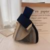 Handmade Knit Handbag Women Mini Knot Wrist Bag Fashion Casual Color Wide Stripe Plaid Tote Bag