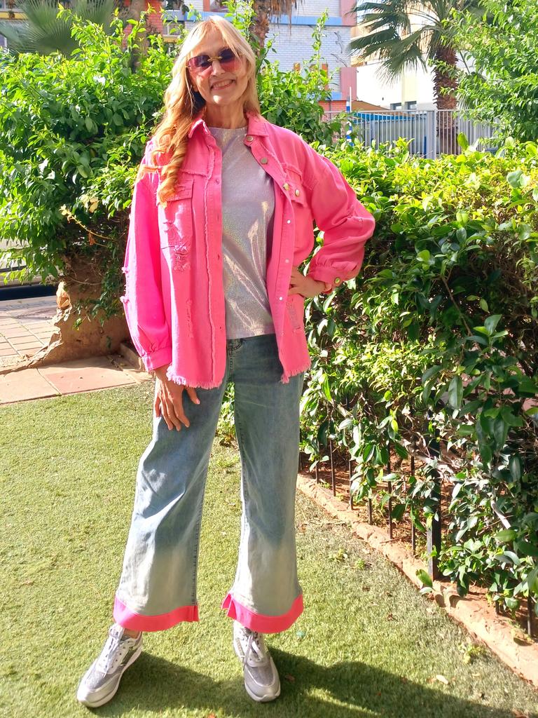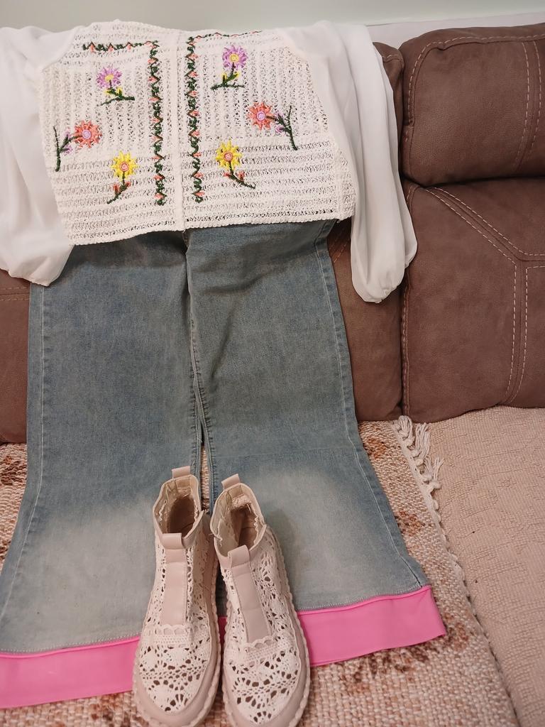 Sweet and Cool Color Block Denim Wide Leg Pants Women High Waist Loose Casual Trousers