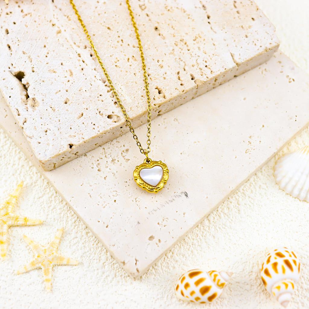 French 18K Gold Mother Shell Love Necklace, Retro Light Luxury Exquisite Jewelry, Wind Collarbone Neck Chain