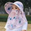 Women's Summer Wide Brim UV Protection Hat with Neck Shawl and Ponytail Tie