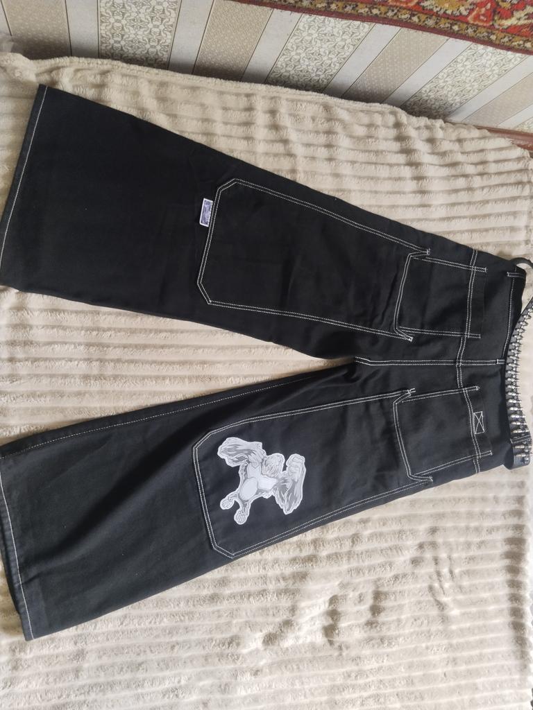 Unisex Y2k Oversized Black Women Jeans Vintage Wide Leg Embroidery Denim Trousers Grunge Hip Hop Style Streetwear Baggy Jeans