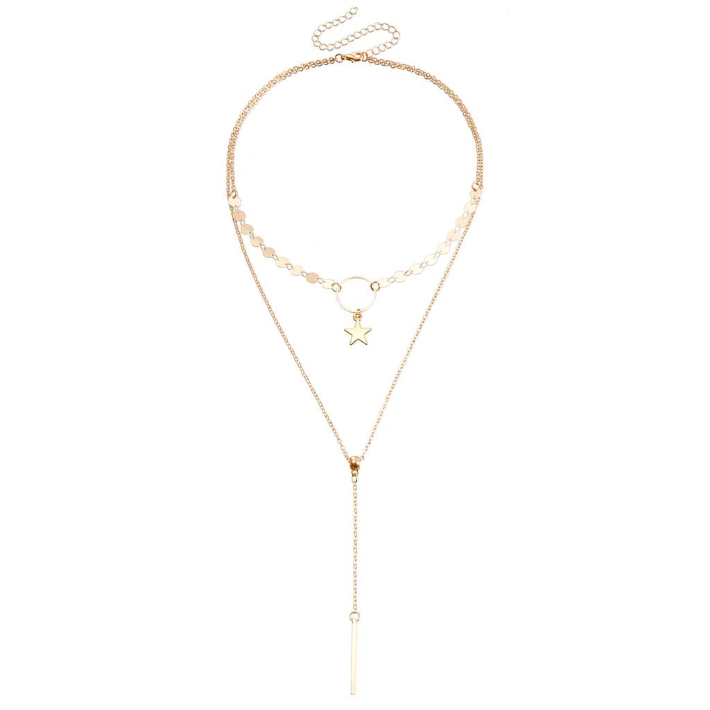 Jewelry, Metal Chain Disc Fringed Necklace, Hip-Hop Multi-Layer Stacked Star Necklace Woman