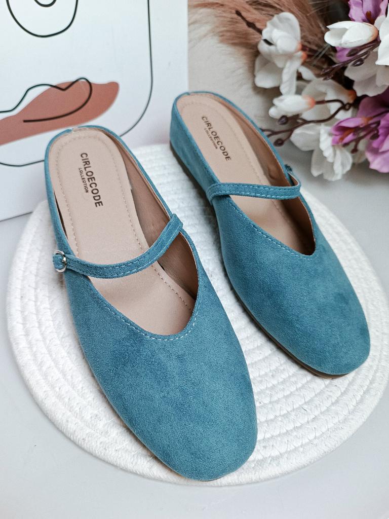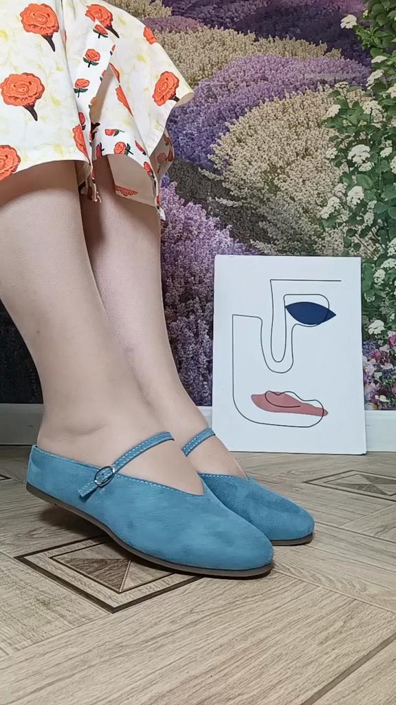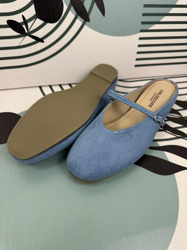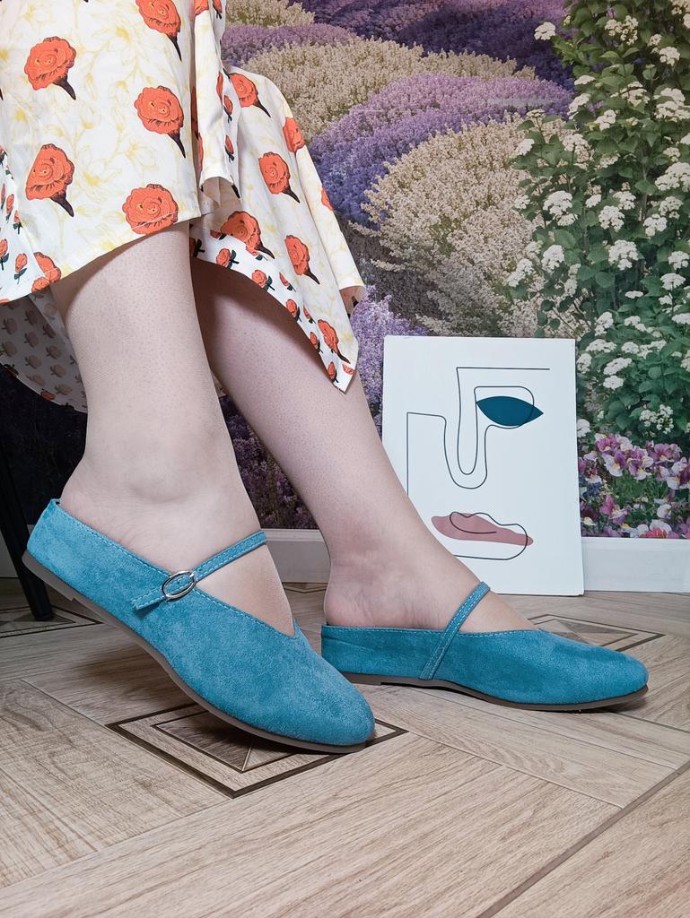 Half-slipper Women's Summer Shoes with A Square Toe Flat Bottom Low Heel and A Single Strap Mary Jane Muller