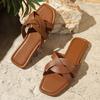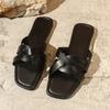 Foreign Trade Large Size Slippers Women's Outer Wear 2025 Summer New Design Woven Roman Sandals Microfiber One Drag Size 36-43