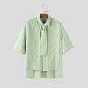 INCERUN Summer Men Lapel Tie Up Short Sleeve Buttons High Low Casual Shirts