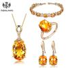 Yellow Gold Oval Earrings & Citrine Pendant Set with Simple Moissanite Bracelet and Four-Claw Citrine Ring