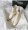 Brown Short Boots Women's High Heels Autumn and Winter New Velvet Thick Heel French Small Ankle Boots Rear Zipper Elastic Square Head Thin Boots