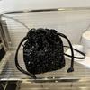 Korean Small Sequin Bucket Bag Trendy Soft Tie-mouth Shoulder Bag Casual Niche Fashion Personality Crossbody Bag Trendy
