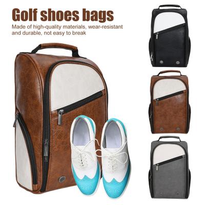 Golf Shoe Bag Waterproof Zippered Shoe Carrier Bag Faux Leather Outdoor Sports