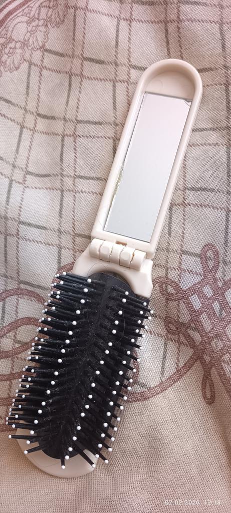 The hairbrush is nice, there is a mirror inside, and a stylish inscription on the top lid!