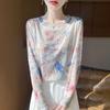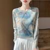 Women's Summer Knitwear Thin Print Pullover Knit Top Long Sleeve Sweater