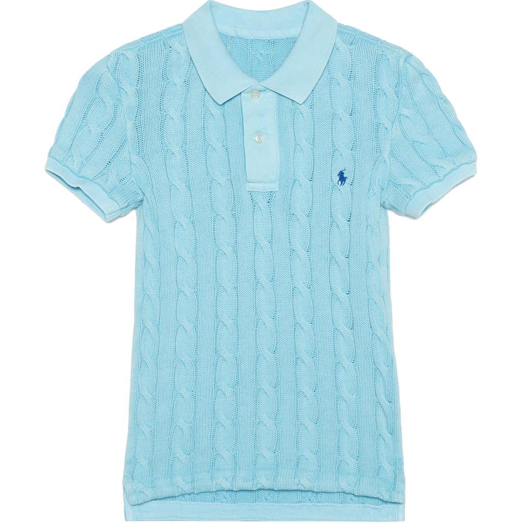 Polo Ralph Lauren SS23 Solid Cable Knit Short Sleeve Polo Shirt Women Tops Blue WMPOKNINCU20643-300