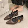 Vintage Pointed Toe Strap Follow-up Shoes for Spring 2025 New French Style Mary Jane Small Leather with Soft Sole Le Fu Shoes