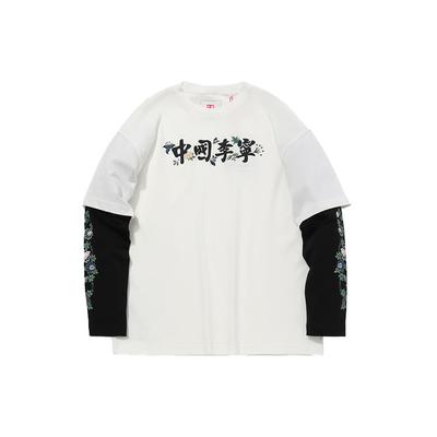Li Ning X Steven Harrington Loose Fit Round Neck Printed Long Sleeve T-Shirt Unisex Tops Off-White AHSTA35-1