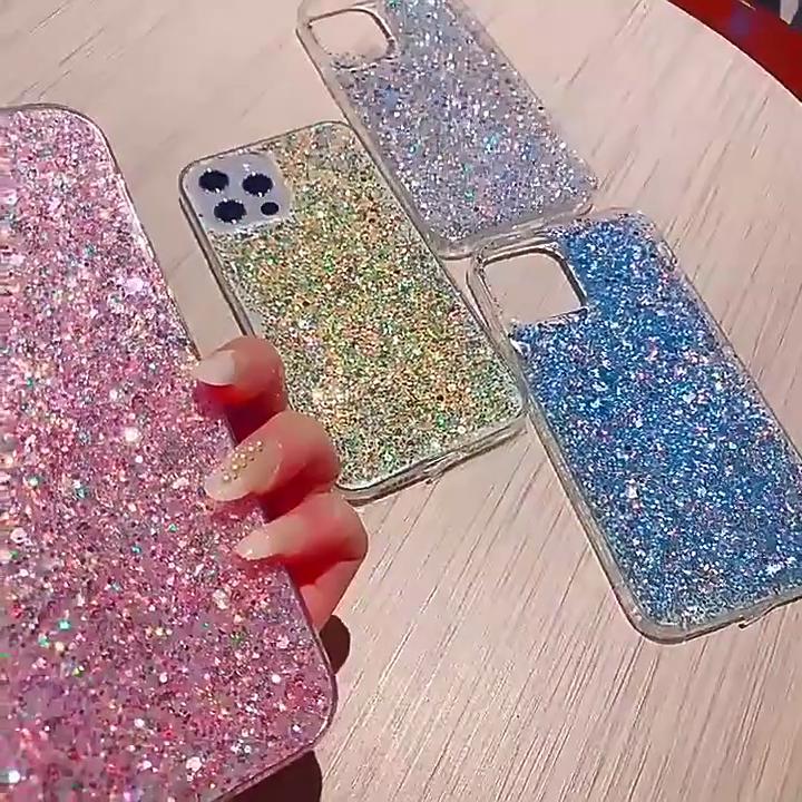 Starry Glitter Sequins Bling Silicone Case For iPhone 16 15 14 13 12 11 Pro X XS XR Max 8 7 6 Plus SE Bumper Transparent Cover