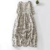 In the Summer of 2025, the New Printed Cotton and Linen Dress for Women's Loose and Thin Seven-quarter-sleeved V-neck Big Pendulum Long Skirt